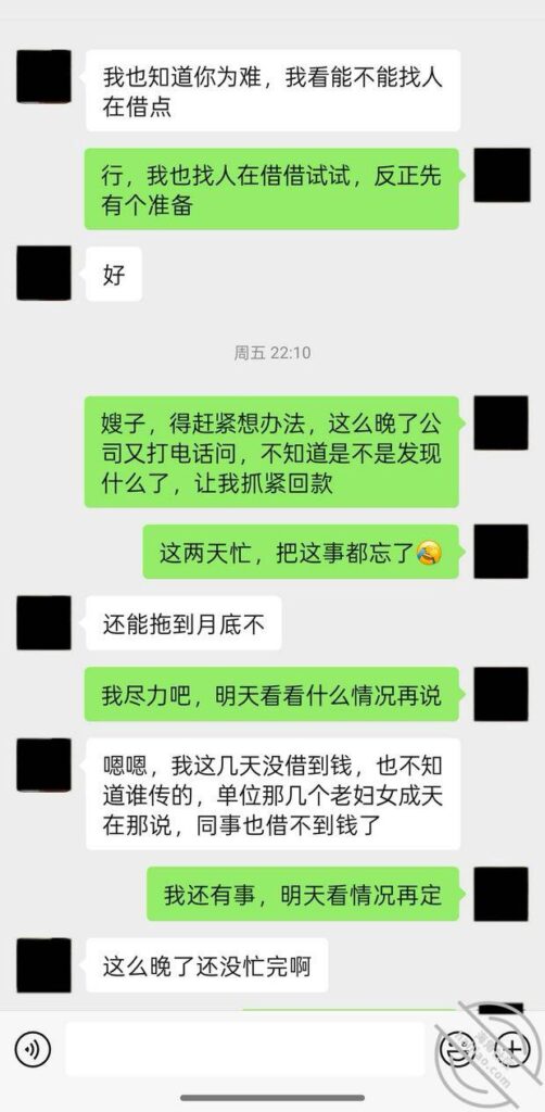 嫂子有些生气起身就要出去找人借了还我,没有阻拦让她出去碰碰壁就好了,该说的已经说完了让她消化消化,一直到现在也没有收到任何回复,发完帖子就去给嫂子发消息问她有没有借到!