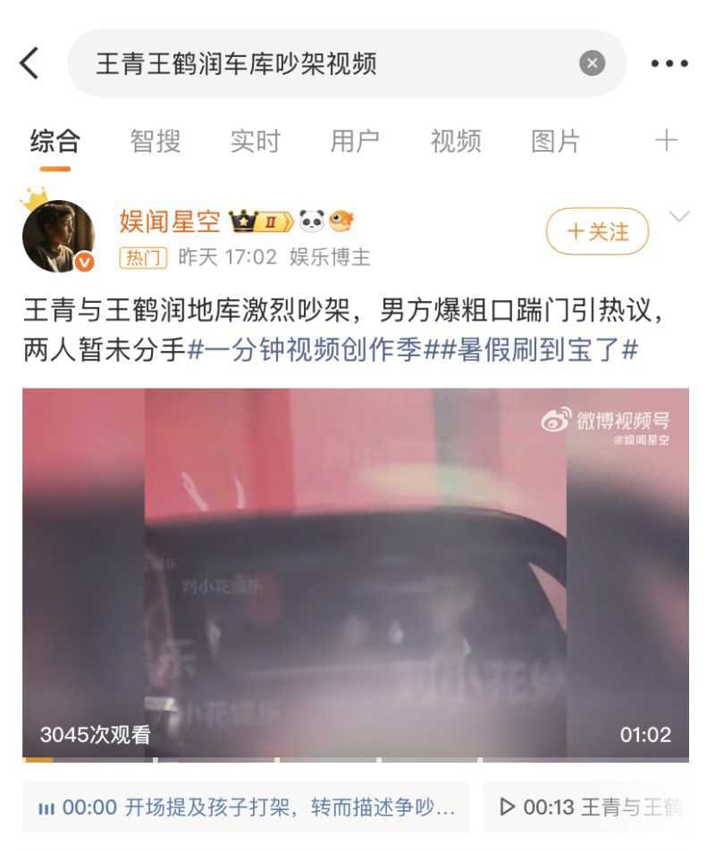 内娱最红cp组合王青王鹤润被传出轨车内吵架视频流出
