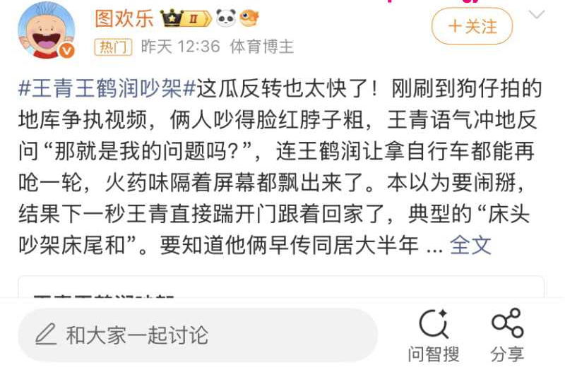 有网传消息传出,王鹤润出轨某导演,并流出两张大尺度照片