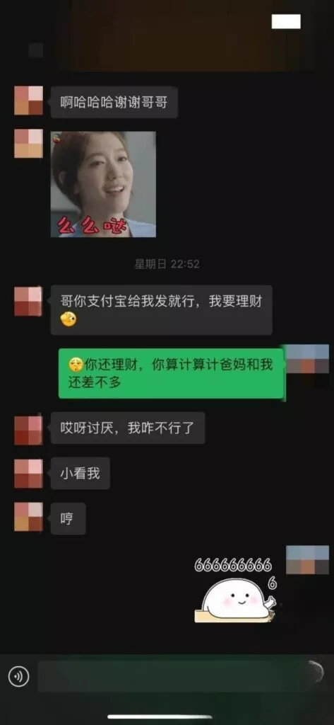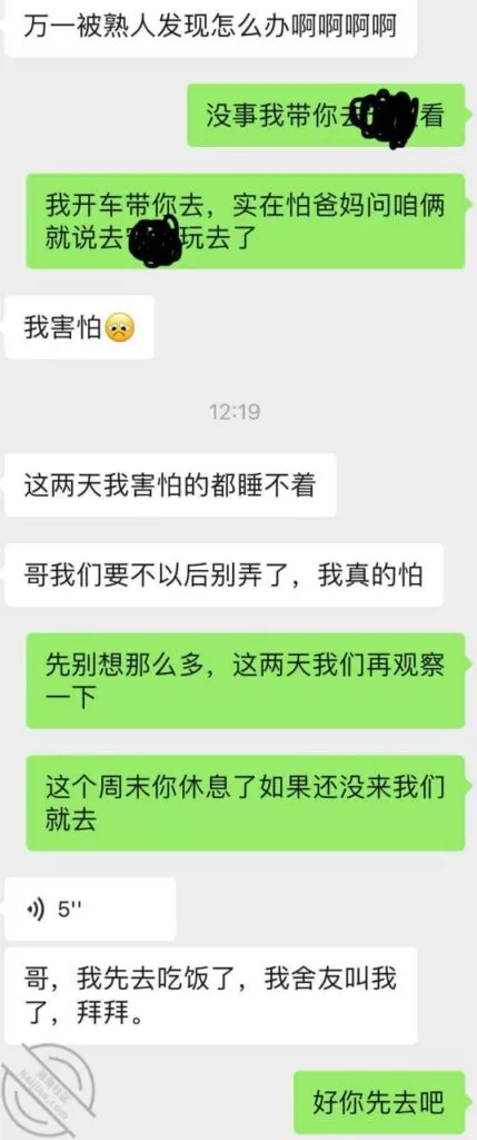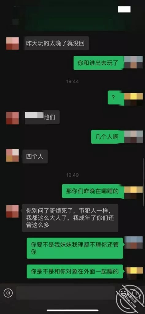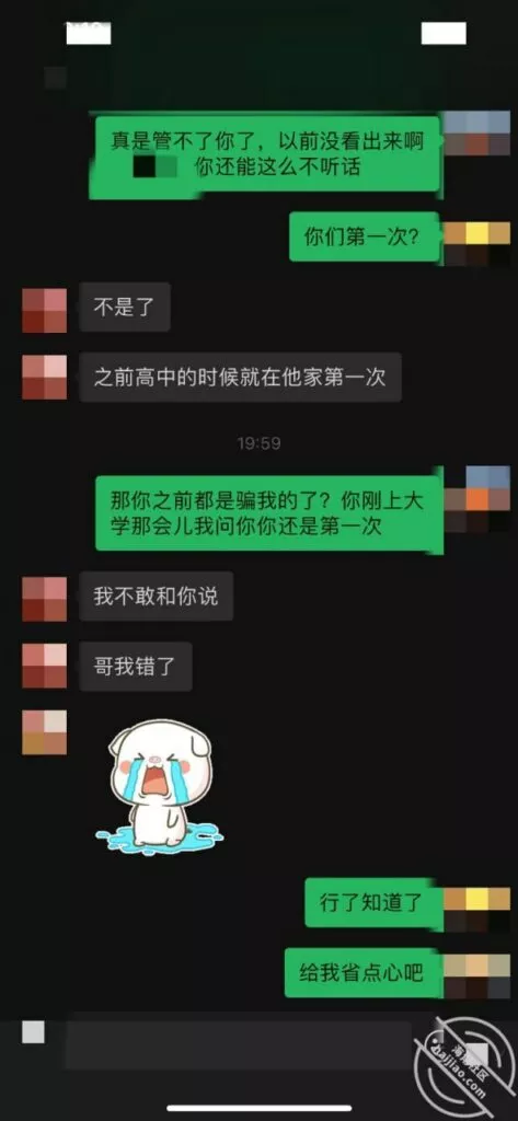 本来这段时间不想更新帖子了,因为没回家一切都是空谈,可是今天更新是因为突然知道我妹不是处了,现在我也形容不出来我的内心是怎么样个感受,说难受吧感觉妹妹的第一次给了别的男人心里不爽,说不难受吧,又感觉我一直担心的问题迎刃而解了,我不是接受不了亲兄妹之间错乱关系,反正我们如果真的发生了关系肯定是戴套做好安全措施的,我心里感觉JB带上套,谁的棍也一样,无非大小不同,亲哥的又怎么样,我之前担心的是我拿走了我妹的第一次,万一以后她嫁人了她老公嫌弃她不是处她会怪我,现在既然是她自己的选择她到时候恨也恨不到我,我有这种想法完全是因为我自己,我又渣又浪,还想以后找个少女老婆结婚,我有时候都挺恶心我自己的,也不知道有没有和我一样想法的兄弟们。现在给兄弟们看看我今天是怎么知道我妹不是处的,本来和妹妹前几天还好好的什么也正常,给你们看看前几天的聊天记录,兄弟们,我第一次发聊天记录,图片都搞混乱了,等会儿重新编辑一下吧,因为重点放在隐私打码上了没有排号,下一帖给你们看完整