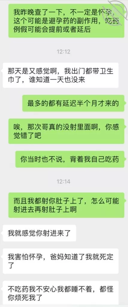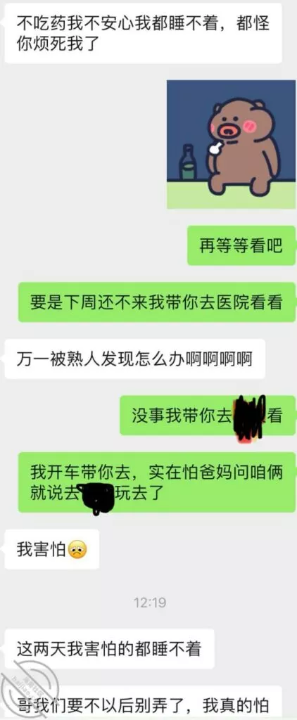 一定一定要做好避孕措施,可是精虫上脑之后就又开始抱侥幸心理,一开始只是无套插几下就赶紧戴套,后面无套插到快射再戴套,最后干脆不带感觉只要最后快射的时候拔出来就行,一步一步被自己的欲望贪念冲昏了头脑,我现在真的有点害怕了,如果真的怀孕了就算偷偷的去打掉,我不知道期间妹妹恢复期什么的能不能瞒得住,我现在只希望妹妹推迟例假是因为避孕药的原因,我所有事情都爱先想最坏的结果,如果这周末还没来我就带妹妹去旁边城市的医院检查一下。唉,把事情想简单了,都说错乱关系只要两个人守住秘密,做好避孕措施就可以,但是就这么简单的事情我都没做到,搞的妹妹都害怕了,不想继续了,我也不知道怎么办才好了本来都纠结要不要发这个帖子,中午我就纠结了,纠结到现在还是发出来了,祈祷千万别怀!