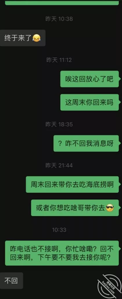 昨天中午收到妹妹消息,得知妹妹大姨妈终于来了,我也是松了一口气,整整推迟了半个月才来吓死人了。这周末本来想给妹妹好好赔礼道歉,带她出去好好吃几顿,给妹妹买点小礼物让她开心开心,可是这家伙一点面子不给,消息都不回我了,打电话也不接,看来这次我做的是真过分了,长这么大第一次和妹妹闹这么僵,唉!妹妹现在消息都不想回我,海友私信我的方法都用不上。