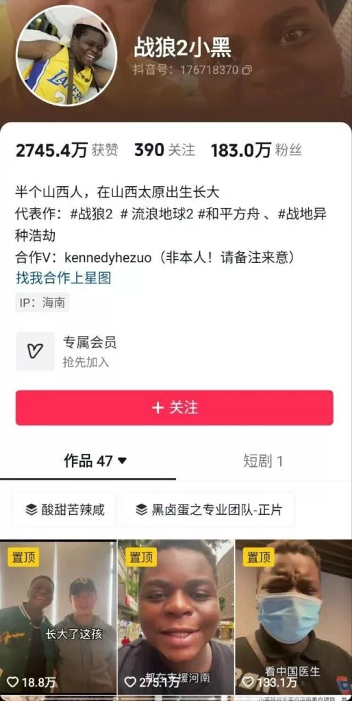 谁还记得在《战狼2》中,始终陪伴在冷锋身边的憨憨小黑?随着这部电影的热播,这位小演员也一夜成名,粉丝数量暴增至180万。然而,令人意外的是,小黑竟然突然转行,成为了一名网络红人,开始直播带货,推广伟哥,甚至还现场直播自己在酒店约会应召女郎的全过程。