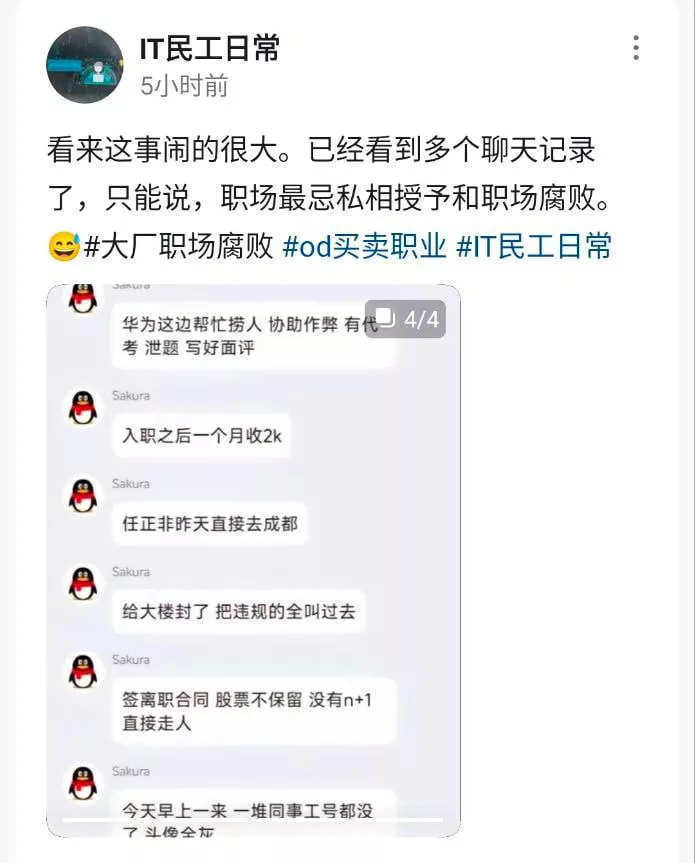 内地企业华为曝惊天内幕招聘舞弊吃空饷一夜开除百余名涉事人员