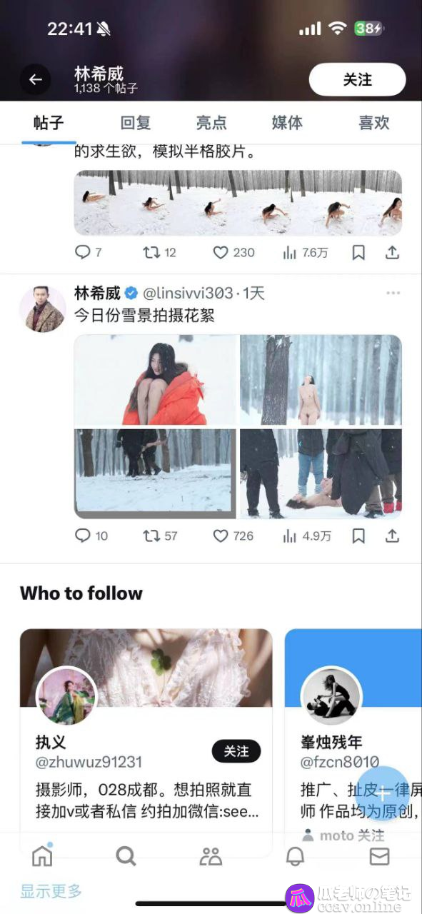 实际上,是一位推特的人体摄影师在雪场拍摄人体写真照片,并没有冻僵也没有什么野战,更没有什么泄漏视频,所以瓜友们不要上当了