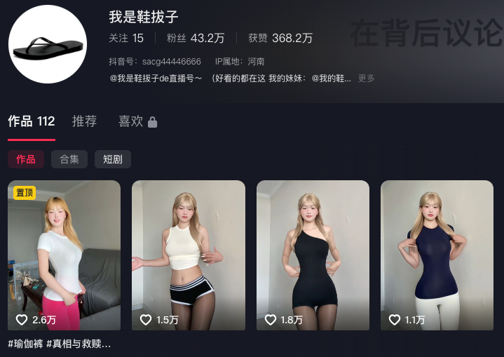 43万粉丝抖音擦边网红“我是鞋拔子”,又是一位身材极度不科学的舞蹈系擦边网红,虽然颜值不算出众,但极具魅力的身材和一双大长腿仍然非常具有竞争力。