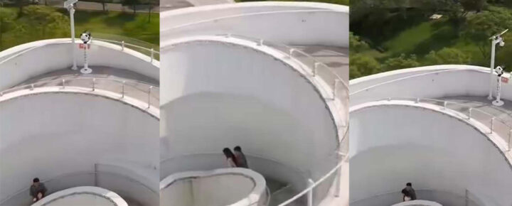 无人机得了MVP!情侣旋转楼梯野战doi却被高空无人机完整拍下