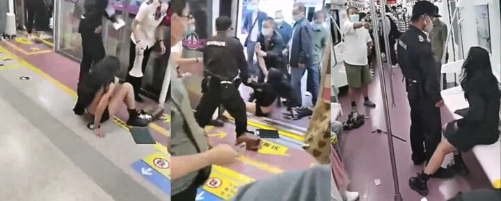 西安地铁三号线女乘客吵闹被说教竟动手保安强制驱赶险曝光