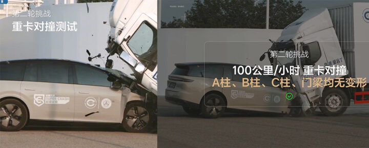 内地新能源车企再创碰撞测试名场面8吨乘龙重卡被2吨理想撞翻