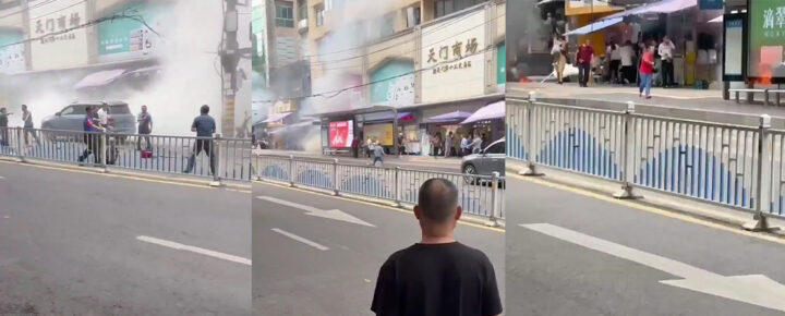 四川重庆朝天门街头突发事件!不明男子朝店铺投掷燃烧物